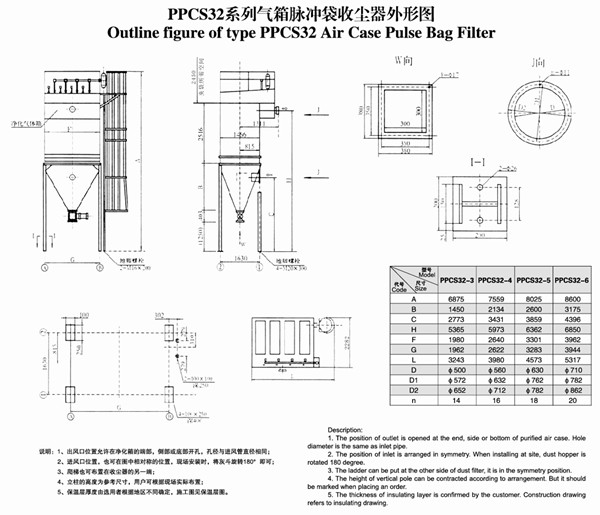 5、收塵器根據(jù)不同規(guī)格,可以是整機(jī)發(fā)運(yùn),或以解體形式發(fā)運(yùn),其基礎(chǔ)設(shè)計(jì)由選用者負(fù)責(zé)。