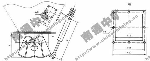 鄂式閘門由本體、扇形閘板、軸、齒輪、密封副,執(zhí)行機(jī)構(gòu)等部件構(gòu)成。手動或執(zhí)行機(jī)構(gòu)推動搖桿,使齒輪帶動扇形閘板沿軸心旋轉(zhuǎn),使兩個(gè)扇形閘板向兩邊開啟,物料隨即下落,待接料裝置滿載后,由執(zhí)行機(jī)構(gòu)帶動搖桿,使扇形閘板復(fù)位,關(guān)閉截?cái)嘞侣涞奈锪稀?/p>