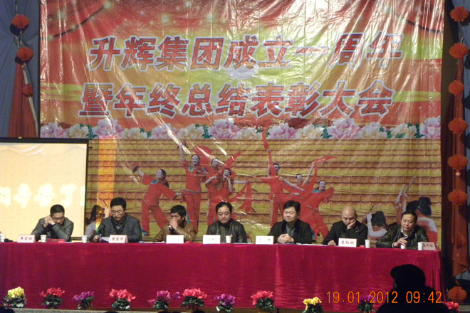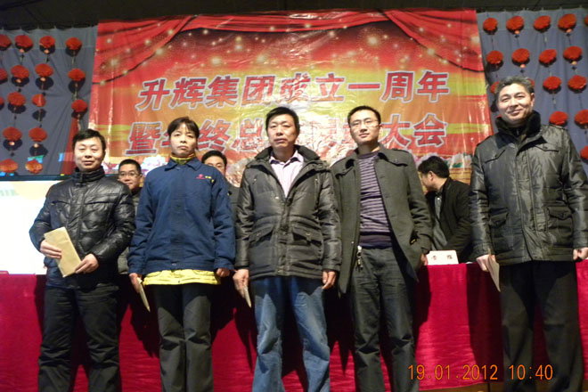 2012年1月19日,升輝集團慶祝成立一周年職工表彰大會在白甸鎮(zhèn)人民大會堂隆重召開??偨Y(jié)2011年的工作,表彰2011年度各項工作中涌現(xiàn)出的先進集體和個人,部署2012年的工作任務(wù)。